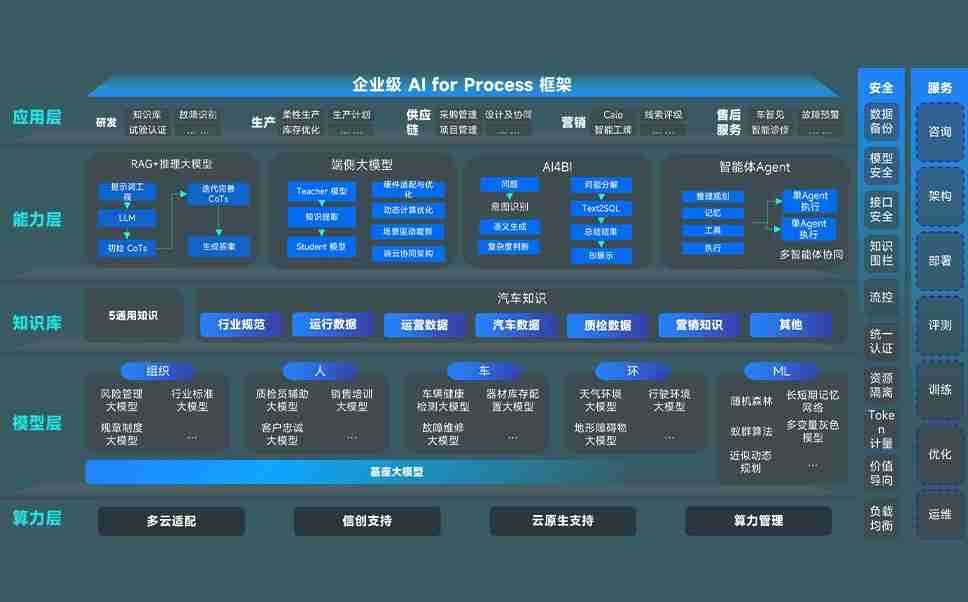 乐发问学智车解决方案是一套基于AI技术的汽车行业智能化系统,,,覆盖从底层算力到顶层AI应用的全栈方案。。。。方案由算力层、、、、模型层和应用层组成:算力层,,方案支持多种一体机配置,,,具备云端灵活部署、、、、多云适配以及动态优化计算资源的能力;模型层,,,乐发问学平台版提供了企业级AI应用一站式构建与管理平台,,,支持基于后训练强化技术的汽车企业专属模型的训练、、、、评测和运营;应用层,,乐发问学DeepSeek版提供包括超级员工、、、、智能招采、、、、智能营销、、智能客服、、、AI for BI等一系列解决方案,,,,可助力汽车行业实现数字化转型,,,,让管理更智能、、、、响应更敏捷。。。。